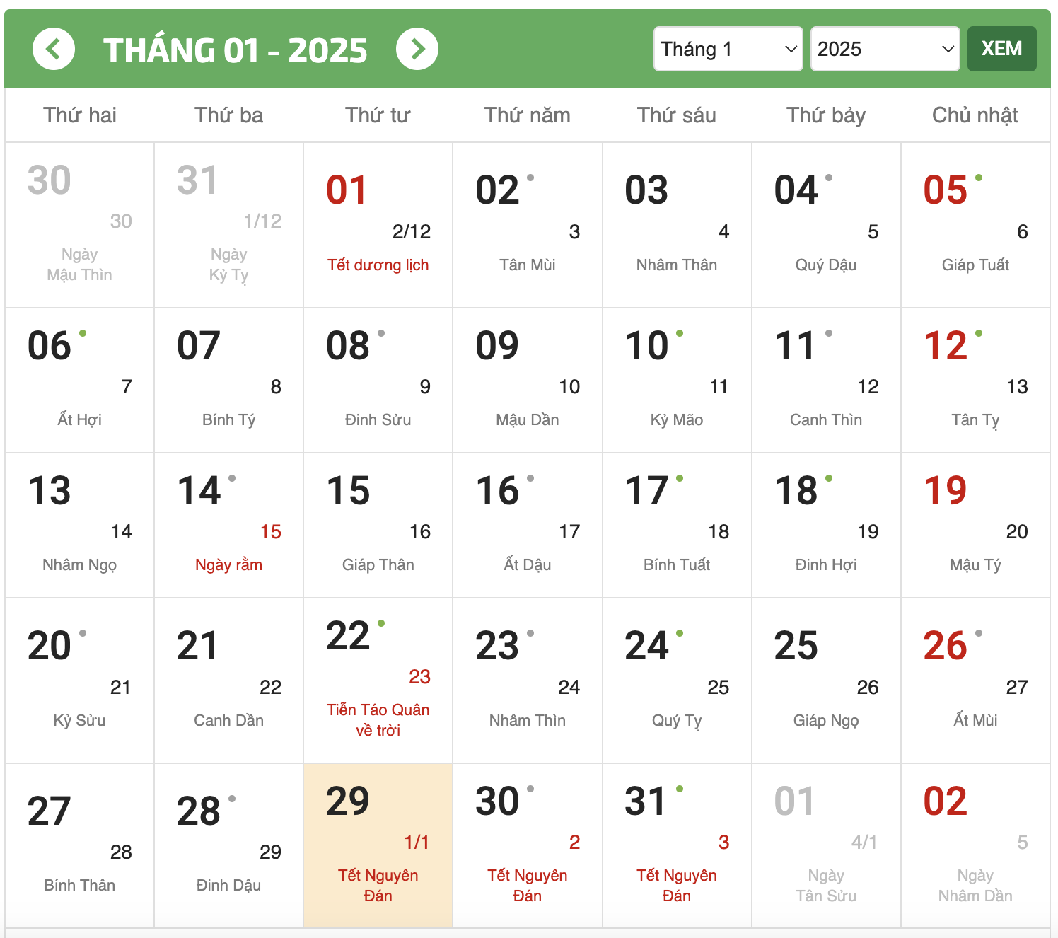 Tết Dương lịch 2025 sẽ rơi vào thứ Tư, ngày 01/01/2025 (Âm lịch 02/12/2024).