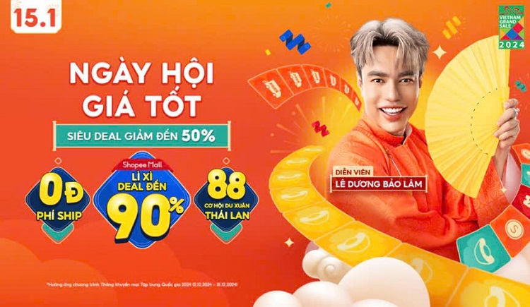 Shopee đã chuẩn bị một mùa Tết sale cực kỳ sôi động với chương trình "Ưu đãi Tết mở màn" bắt đầu từ Tết Dương Lịch 01.01.2025. Bạn sẽ được trải nghiệm nhiều ưu đãi hấp dẫn, bao gồm miễn phí vận chuyển cho tất cả các đơn hàng và cơ hội nhận lì xì với voucher trị giá lên đến 1.1 triệu đồng.
