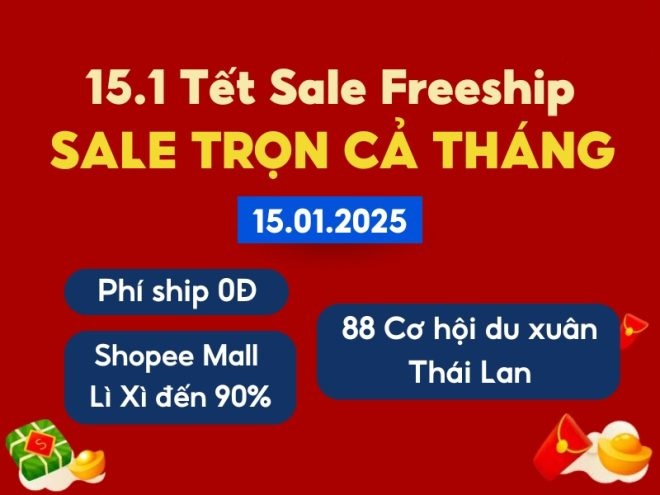 Hiểu rõ nhu cầu mua sắm lớn trong dịp Tết, Shopee đã kéo dài lịch sale đến tận ngày 17.01.2025. Nếu bạn bỏ lỡ các ưu đãi trước đó, đừng lo vì vẫn còn cơ hội săn sale vào ngày 16.01.2025 và 17.01.2025. Tuy nhiên, đừng quên ghi nhớ ngày 15.01.2025 – ngày diễn ra 15.1 Tết Sale Freeship, khi bạn có thể tận hưởng hàng ngàn hot deal, voucher giảm giá và đặc biệt là miễn phí ship cho các đơn hàng.