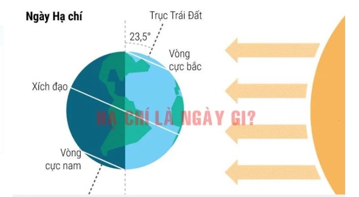 Vào ngày Hạ Chí Mặt Trời sẽ đạt vị trí cao nhất trên bầu trời và có thời gian sáng dài nhất. Vào ngày này, độ nghiêng trục tối đa của Trái Đất so với Mặt Trời là 23,44° độ Bắc.