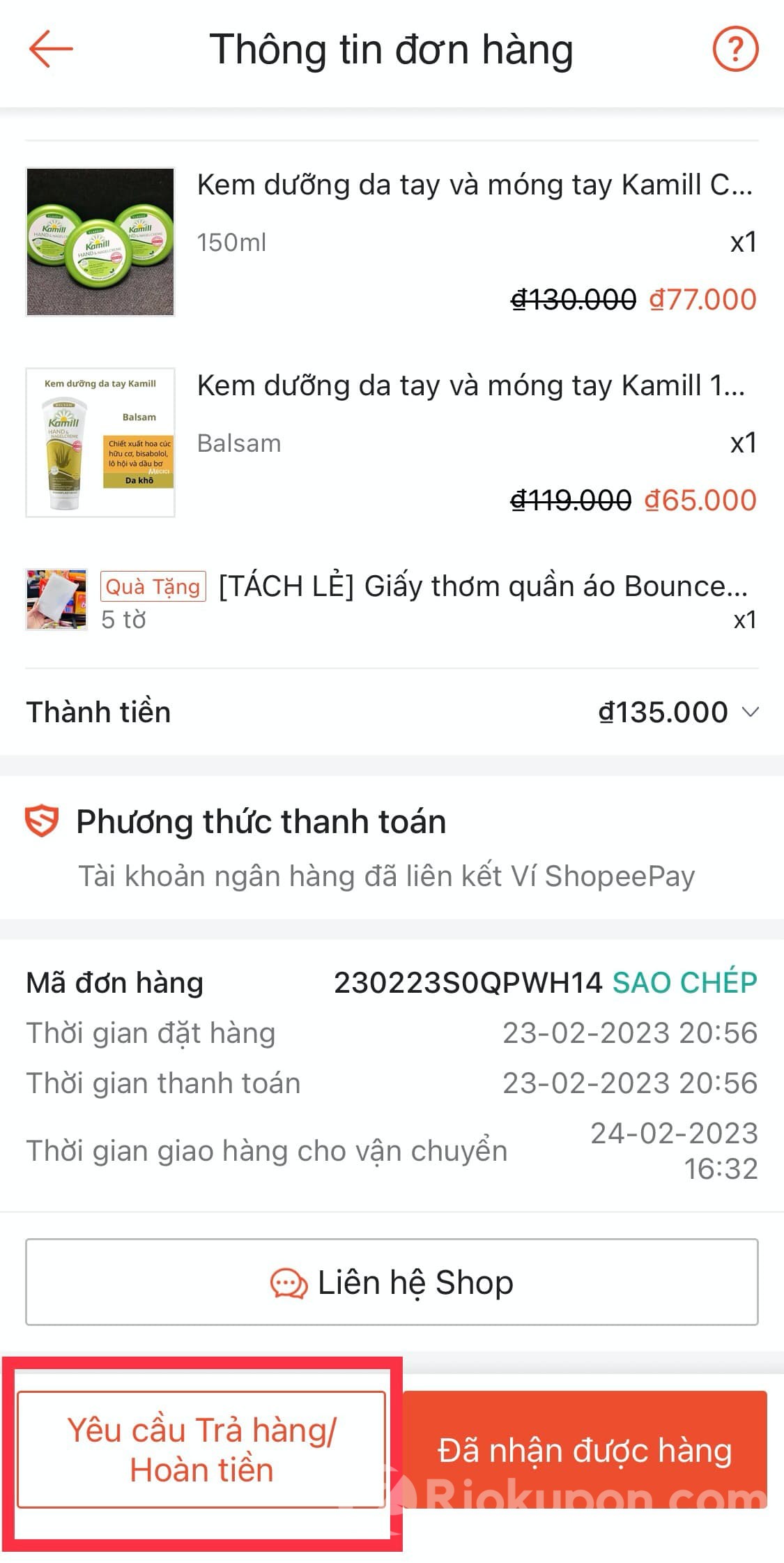 Bước 2. Gửi khiếu nại đến Shopee: Bạn có thể gửi khiếu nại đến Shopee bằng cách vào đơn hàng muốn khiếu nại nhấn chọn “trả hàng/hoàn tiền”. Để yêu cầu trợ giúp, giải quyết vấn đề một cách nhanh chóng. Theo đó, sau khi nhận được yêu cầu từ bạn, Shopee sẽ tiến hành kiểm tra, đánh giá và xử lý khiếu nại của bạn theo quy trình đã được quy định.