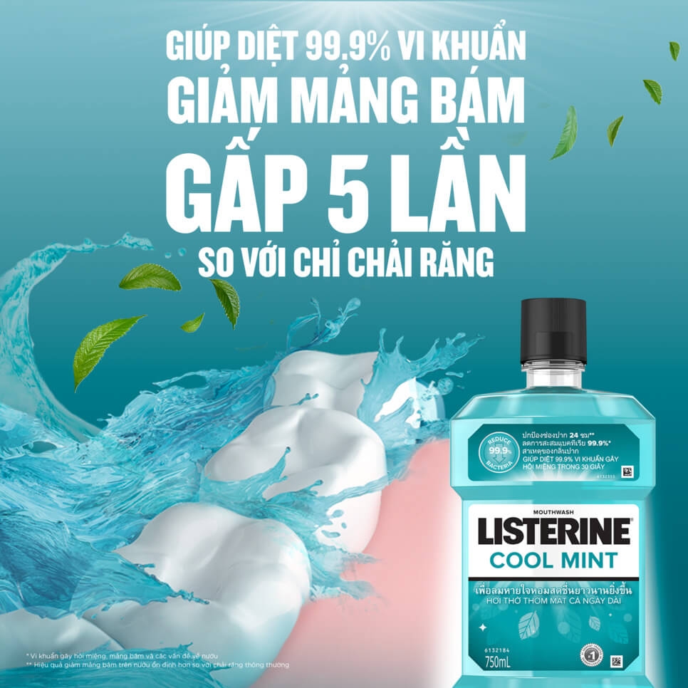 Nước súc miệng Listerine Cool Mint là một sản phẩm “quốc dân” không thể thiếu trong chu trình làm sạch răng miệng của nhiều gia đình. Nhờ chứa các thành phần đặc biệt (dầu bạc hà, tinh dầu cỏ xạ hương, chiết xuất cây lộc đề xanh, chiết xuất cây bạch đàn) giúp loại bỏ mảng bám, vi khuẩn bảo vệ răng miệng trong suốt 12 giờ. Sản phẩm không chứa cồn, không gây cay rát và mùi hương bạc hà thơm mát giúp bạn tự tin hơn trong giao tiếp.