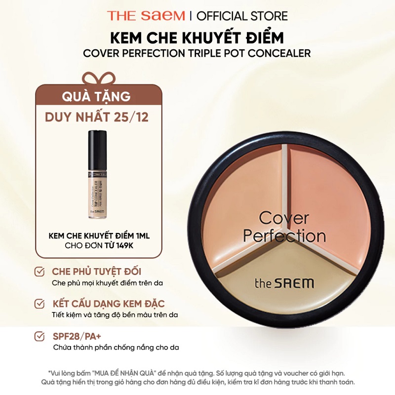Kem che khuyết điểm triệt sắc The SAEM Cover Perfection Triple Pot Concealer