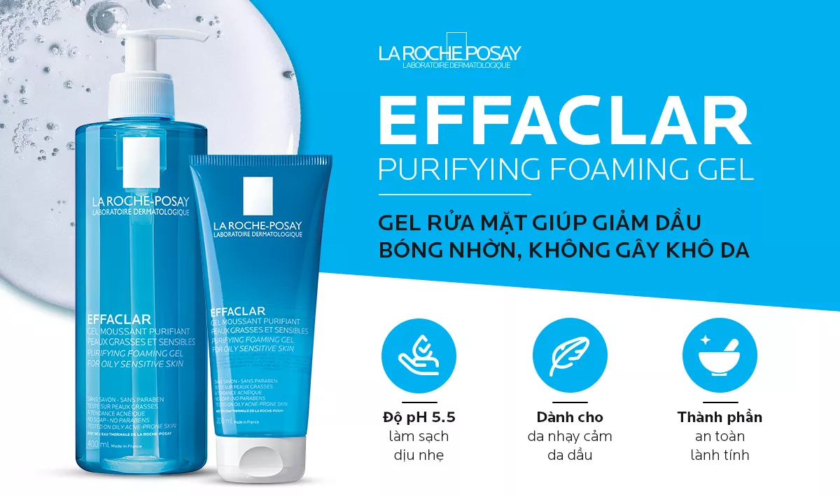 Top 2: Gel rửa mặt tạo bọt cho da dầu nhạy cảm La Roche-Posay Effaclar Foaming Gel 200ml