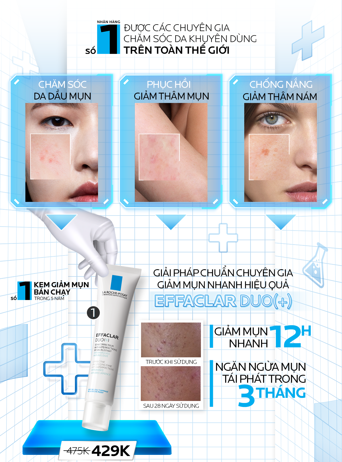 1. Kem dưỡng giảm mụn, ngăn ngừa vết thâm và ngăn mụn tái phát La Roche-Posay Effaclar Duo+ 40ml