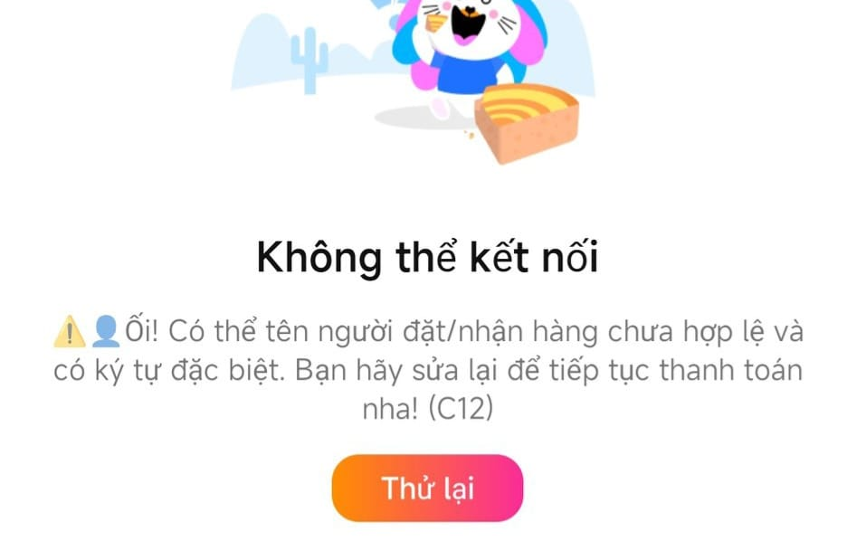 - Tên người nhận không hợp lệ: Nếu bạn để tên người nhận có chứa ký tự đặc biệt, quá ngắn hoặc quá dài cũng có thể gây lỗi C12.