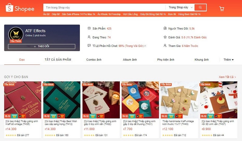 ATF Effects là một cửa hàng trên Shopee chuyên cung cấp các sản phẩm đồ trang trí và vật dụng trang trí nội thất. Cửa hàng này có sẵn các sản phẩm sáng tạo và phong cách, bao gồm cả các sản phẩm liên quan đến trang trí thiệp Giáng Sinh. Nếu bạn đang tìm kiếm sự độc đáo và phong cách cho đồ trang trí của mình trong mùa lễ hội, ATF Effects có thể là lựa chọn phù hợp.