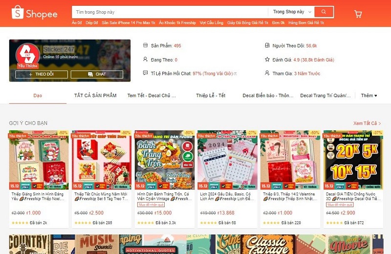 Sticker 247 là một cửa hàng trên Shopee chuyên cung cấp các sản phẩm trang trí và sticker, trong đó có nhiều lựa chọn đáng yêu và phù hợp cho mùa Giáng Sinh. Với sự sáng tạo và chất lượng, Sticker 247 mang đến cho khách hàng những sản phẩm trang trí độc đáo để tạo điểm nhấn cho không gian của họ trong dịp lễ quan trọng này. Bạn có thể tìm thấy thiệp Giáng Sinh đẹp và giá trị tại cửa hàng này, làm cho mỗi món quà trở nên đặc biệt hơn.