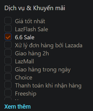 - Cách 2: Search từ khóa sản phẩm muốn mua > Kéo xuống thanh lọc “Dịch vụ & khuyến mãi” > Chọn Sale 6.6