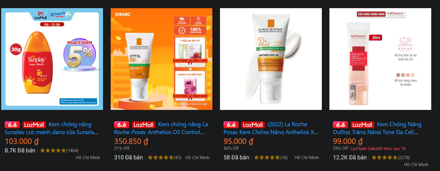 - Cách 1: Search từ khóa sản phẩm muốn mua > Kéo xuống chọn sản phẩm có tag đỏ ghi “6.6” bên phía góc trái của tên như hình.