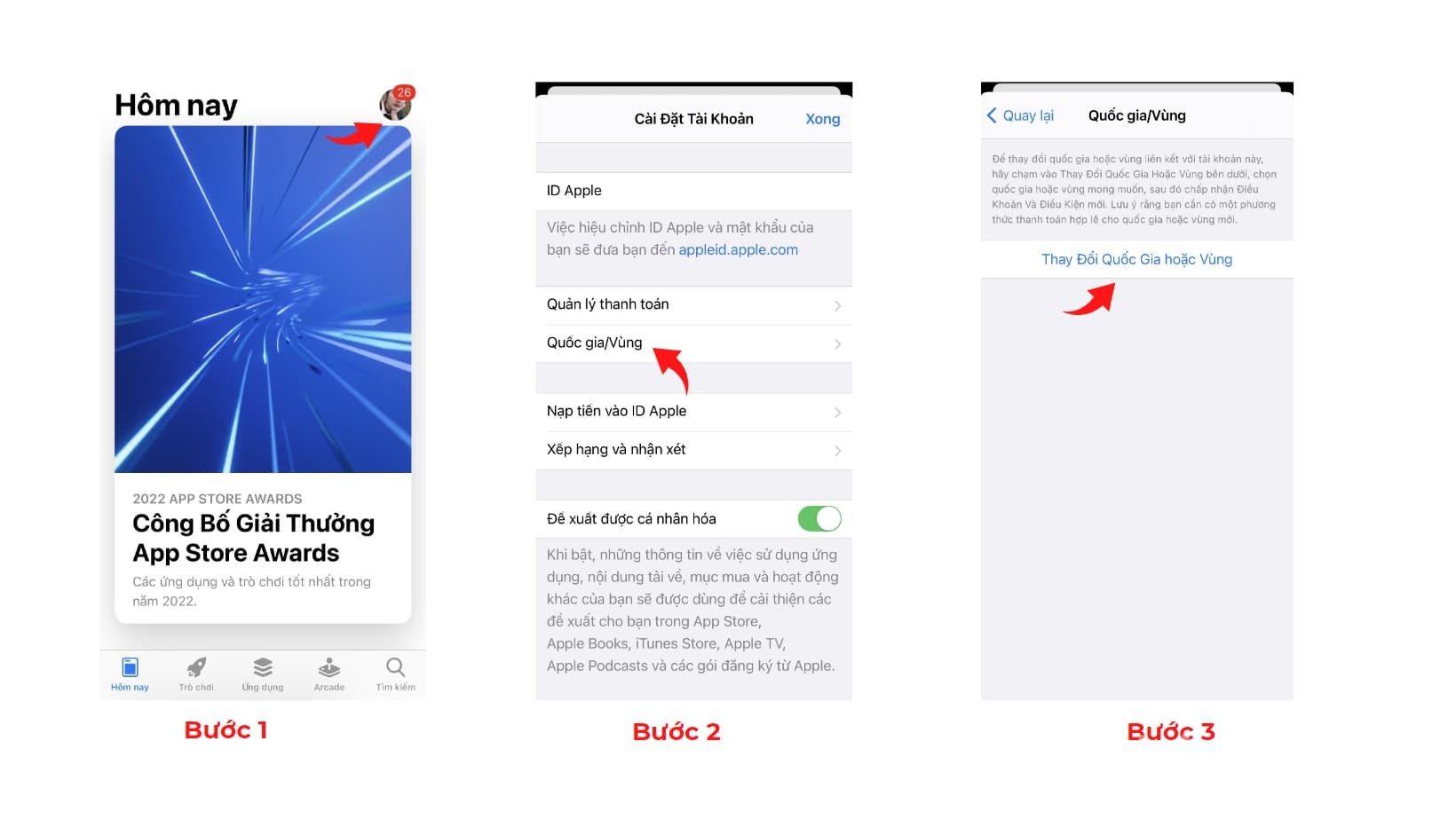 - Bước 3: Chọn “Thay đổi quốc gia hoặc vùng” => Nhấn chọn Malaysia