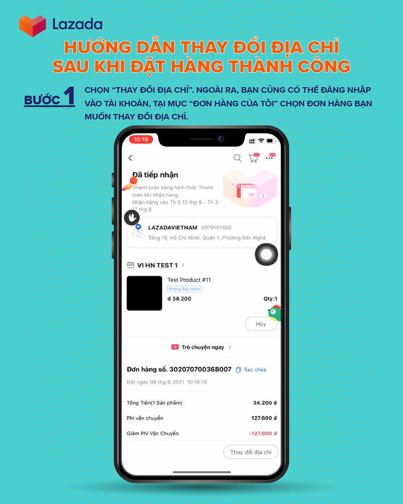 - Đơn hàng trong trạng thái Đã tiếp nhận thì mới thay đổi địa chỉ giao hàng được.
