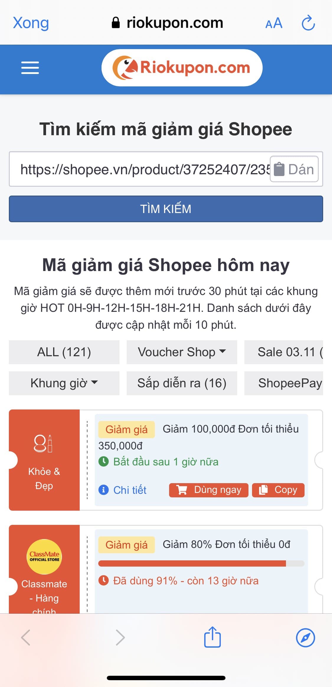 Bước 2: Truy cập vào Riokupon.com => Dán link sản phẩm => Tìm kiếm