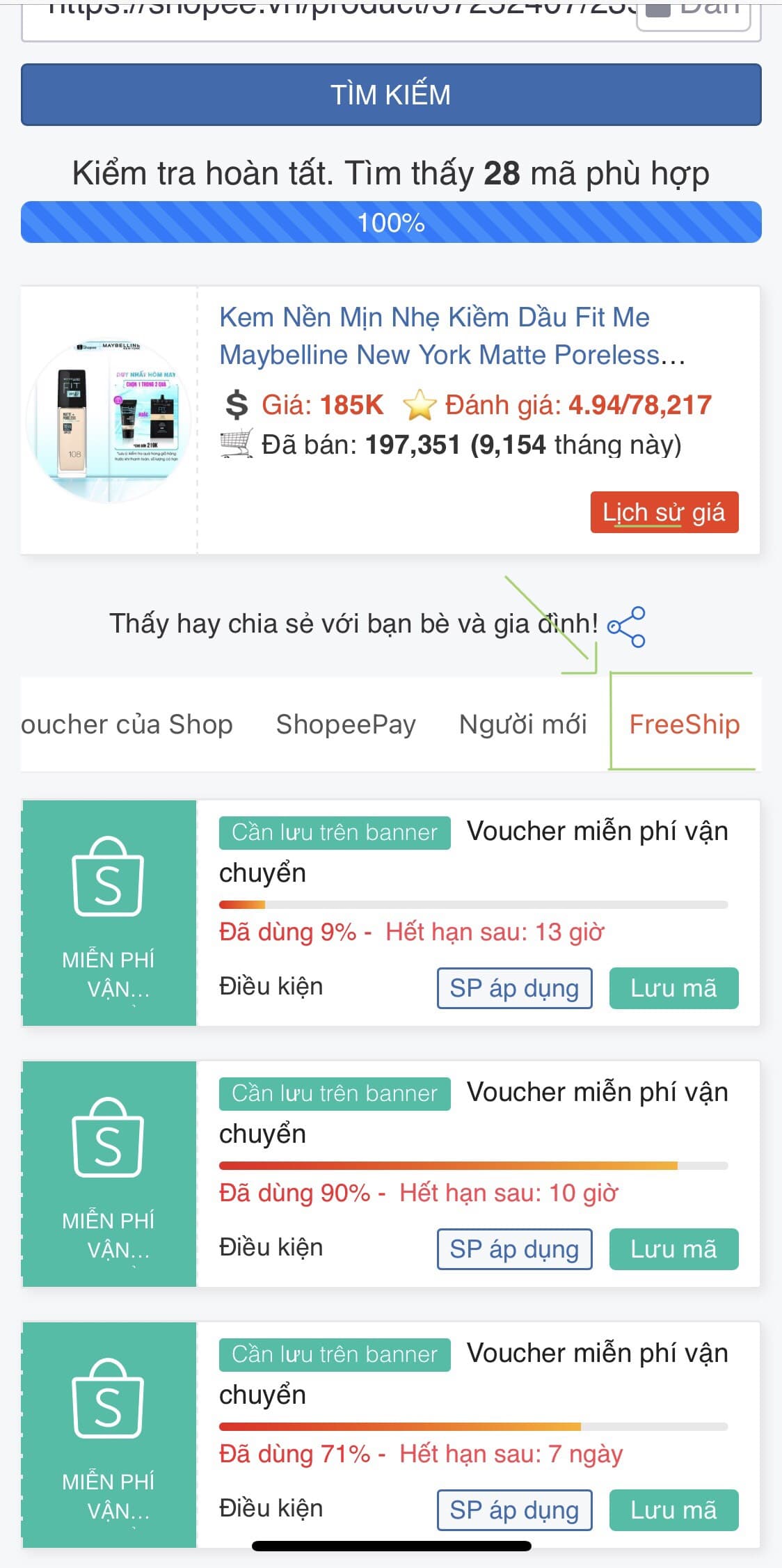 Ngoài ra, bạn có thể vào mục “miễn phí vận chuyển” ở trang chính, ấn vào đó và sưu tầm mã nhé!