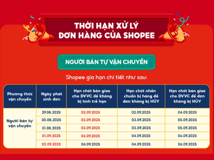 Nếu bạn là các nhà bán trên sàn, không chỉ có đơn vị vận chuyển mà bạn cũng nên lưu ý tới thời gian xử lý đơn hàng trong lễ. Lịch xử lý đơn 2/9 cụ thể như sau:
