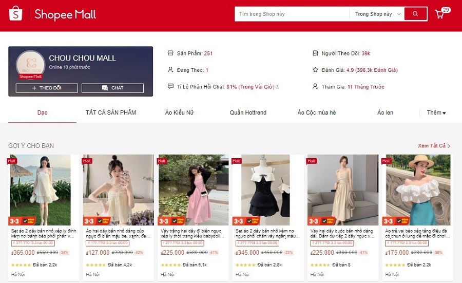 Shop CHOU CHOU đã chinh phục trái tim của các tín đồ thời trang bởi sự sáng tạo và tinh tế trong thiết kế. Với những bộ đầm "bánh bèo" điệu đà, nhẹ nhàng nhưng không kém phần sang trọng, shop đã tạo ra sự khác biệt và độc đáo, làm nổi bật nét đẹp và nét nữ tính của con gái hiện đại.