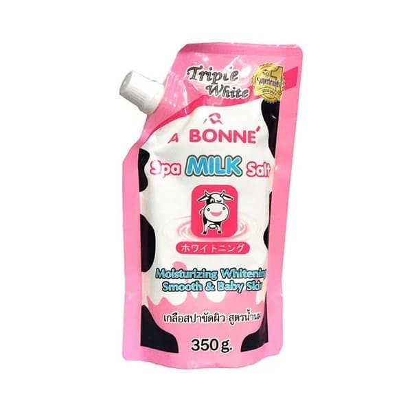 Hầu như chị em ai cũng biết đến loại muối tắm sữa bò Abonne “quốc dân” này. Giá thành cũng rất phù hợp với mọi người. Sản phẩm là sự kết hợp giữa muối biển & sữa bò, tuy nhiên chúng ở dạng bột khô nên bạn cần massage nhẹ nhàng để tránh bị rát.