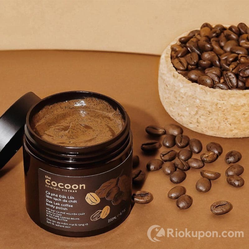 Đầu tiên phải kể đến là tẩy tế bào chết Cocoon, được tạo ra từ những hạt cà phê Daklak nguyên chất và bơ ca cao. Sản phẩm có dạng sệt kết hợp với bã hạt cà phê, đôi lúc gây rát nên các bạn chú ý chà xát nhẹ tay.