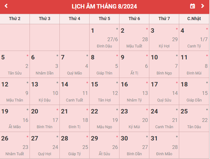 Cũng tương tự như các ngày rằm khác, rằm tháng 7 sẽ rơi vào ngày 15/7 Âm lịch. Năm nay, 2024 ngày này tương ứng với Chủ Nhật ngày 18/8 Dương lịch.