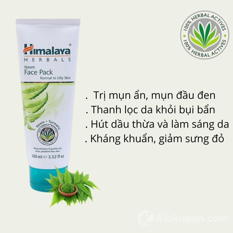 - Mặt nạ đất sét lá neem Himalaya giúp hút bã nhờn hiệu quả, loại bỏ tế bào chết.