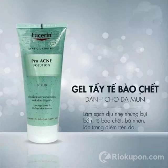 Tẩy da chết Eucerin là sản phẩm tẩy tế bào chết không chứa dầu, kết hợp acid lactic giúp giảm mụn mà không làm khô da. Không những thế nó còn làm sạch nhẹ dịu, giảm các tác nhân gây mụn đầu trắng, mụn đầu đen trên da. Sau khi sử dụng, làn da của bạn sẽ trở nên mịn màng, mềm mại hơn rất nhiều. Những bạn nào thuộc làn da dầu, da mụn thì rất nên trải nghiệm sản phẩm này nha.