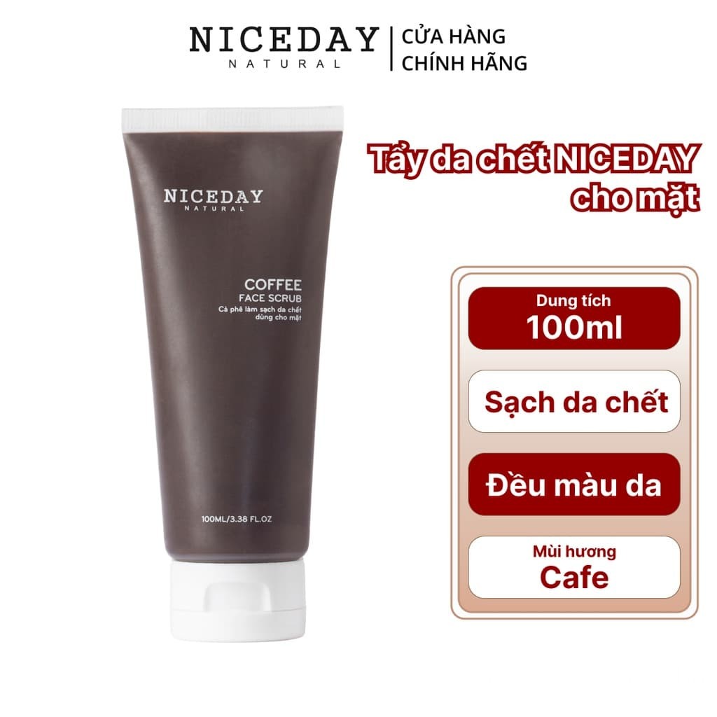 Tẩy da chết Niceday cũng là một sản phẩm tẩy da chết của Việt Nam, nó chiết xuất từ cà phê nên khá mềm mịn và thơm. Bảng thành phần thì siêu lành tính bao gồm hạt cà phê nguyên chất, dầu dừa, dầu hạt jojoba, vitamin E. Công dụng làm sạch da chết trên da mặt, mang lại làn da mịn màng ngay sau lần đầu sử dụng. Chỉ sau 1 tháng là có thể thấy rõ làn da được bật tông tự nhiên rồi.