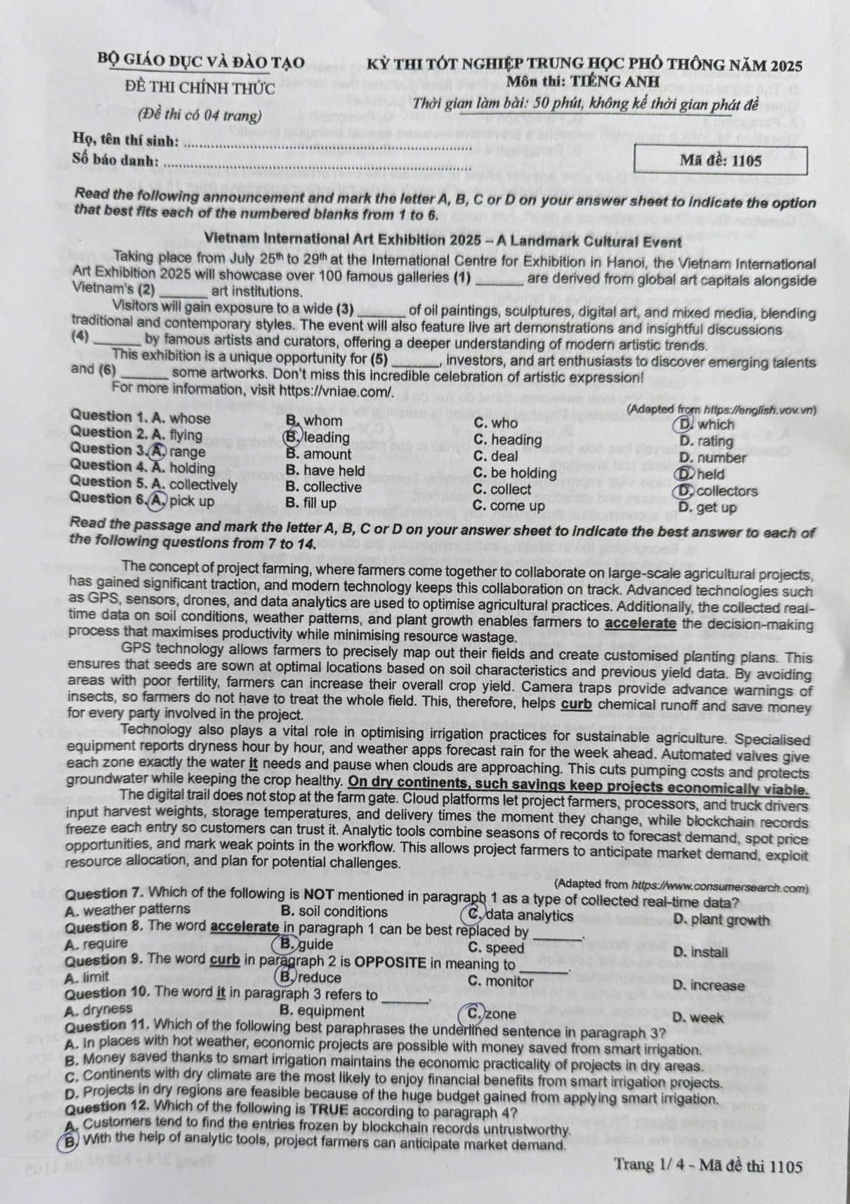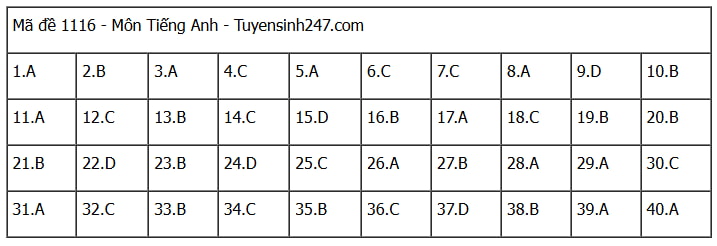 Đáp án đề thi môn Tiếng Anh tốt nghiệp THPT năm 2025 đầy đủ các mã đề