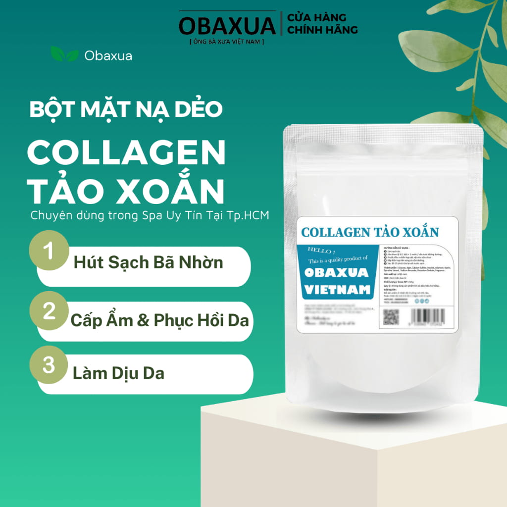 Sản phẩm đầu tiên bạn nên sở hữu tại Obaxua Vietnam chính là dòng mặt nạ dẻo chuyên dùng cho Spa cao cấp. Thành phần chính gồm Collagen tươi và chiết xuất từ các nguyên liệu thiên nhiên như hoa hồng, bạc hà, hoa cúc, cam, lô hội, bột dừa, ốc sên, tảo xoắn lục, sữa non... mang lại hiệu quả và sự an toàn cho người dùng. Với lượt bán 10.1k sản phẩm thì đây là sản phẩm mặt nạ chị em nên lựa chọn cho mình.