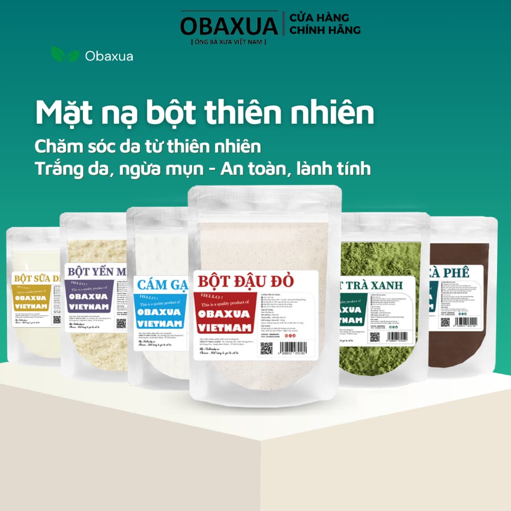 Nhắc đến các sản phẩm bạn nên sở hữu tại Obaxua Vietnam thì không thể quên mặt nạ bột đắp hữu cơ. Đây là sản phẩm giúp chăm sóc da được chiết xuất từ thiên nhiên bột cám gạo sữa, bột Trà xanh, khổ qua rừng, đậu đỏ, diếp cá, tinh bột Nghệ, tía tô, yến mạch, nên có độ an toàn và lành tính cao.