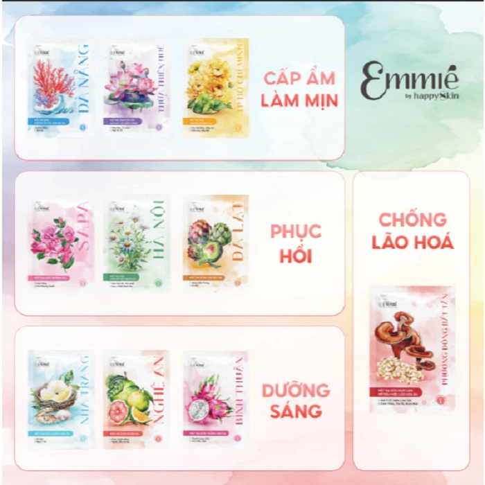 Emmié by Happy Skin tập trung vào việc cung cấp các sản phẩm chăm sóc da và thiết bị làm đẹp. Danh mục sản phẩm của thương hiệu bao gồm: