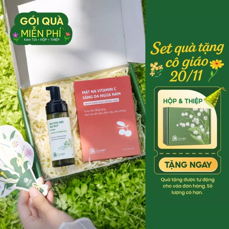 Trong số các lựa chọn quà chăm sóc da, combo sữa rửa mặt kết hợp 5 miếng mặt nạ thạch dừa luôn là lựa chọn tinh tế. Đây là set quà 20/11 tặng cô giáo rất thiết thực, bởi nó giúp làn da luôn sạch thoáng, thư giãn và được cấp ẩm tự nhiên. Món quà tuy đơn giản nhưng lại thể hiện sự quan tâm chân thành đến sức khỏe và sắc đẹp của người nhận.