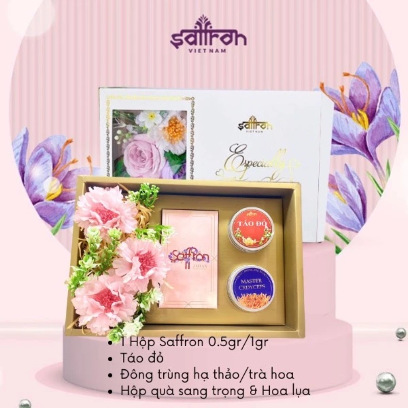 - Set quà 20/11 nhuỵ hoa nghệ tây kèm đông trùng hạ thảo + táo đỏ
