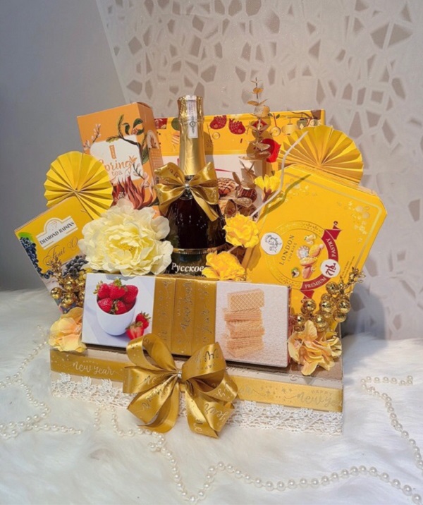 Giỏ quà Tết dạng khay không chỉ là một cách sáng tạo mà còn là biểu tượng của sự sang trọng và tinh tế. Được thiết kế với khay sang trọng, giỏ quà này chứa đựng những sản phẩm chất lượng, tạo nên một bức tranh trang trí ấn tượng. Bên trong, những hộp quà xinh xắn, chai rượu hảo hạng và đủ loại đặc sản Tết sẽ khiến mọi người nhận được giỏ quà cảm thấy hạnh phúc và trân trọng. Chiếc khay sang trọng cũng là một phần của quà, tạo nên ấn tượng đầu tiên mỗi khi người nhận mở hộp.