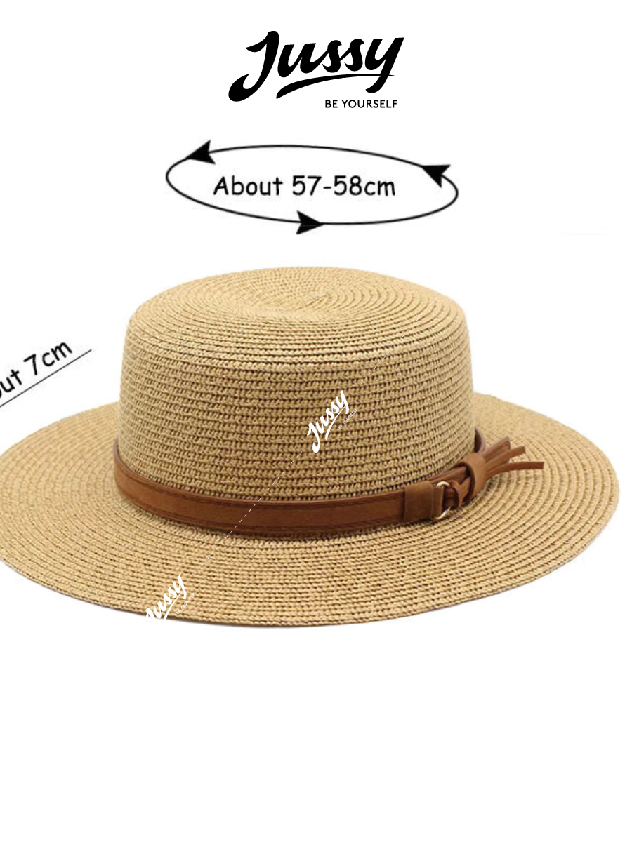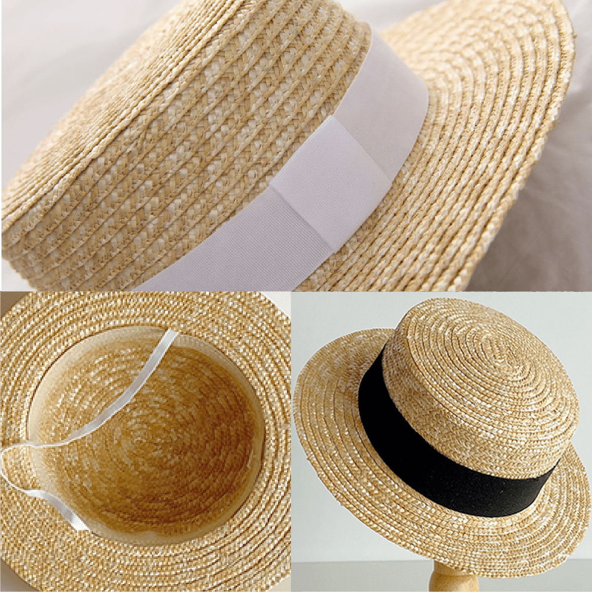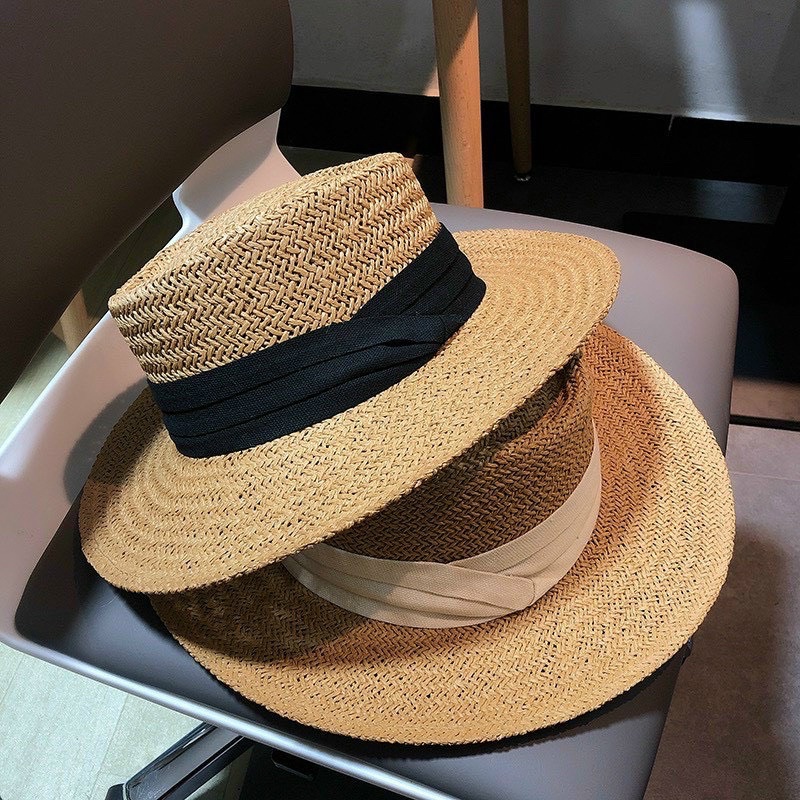 Mũ Cói Boater Nơ Da Pu Cao Cấp JCB09