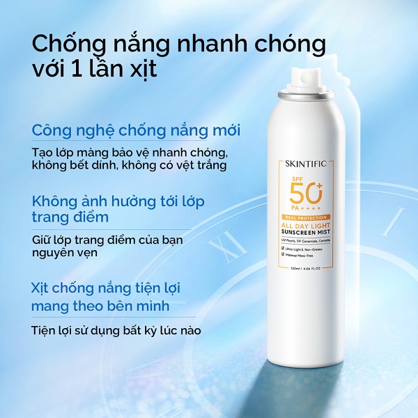 - Xịt chống nắng SKINTIFIC SPF50 PA++++
