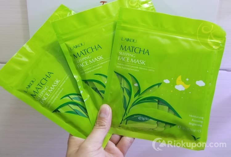 Mặt nạ trà xanh Matcha đến từ thương hiệu nội địa Trung Laikou. Đây là thương hiệu đã được chứng thực Mall (chính hãng) trên 2 sàn thương mại điện tử lớn là Shopee và Lazada nên mọi người cứ yên tâm sử dụng nha. Mặt nạ Matcha Laikou này phù hợp với mọi loại da, kể cả da đang có mụn trứng cá, da hỗn hợp. Chiết xuất 100% matcha chứa các chất làm dịu, phục hồi độ ẩm đã mất khi bạn đang ngủ. Không những vậy, sản phẩm còn giúp dưỡng ẩm và tăng độ đàn hồi cả da, làn da nhờ vậy cũng trở nên căng bóng hơn.