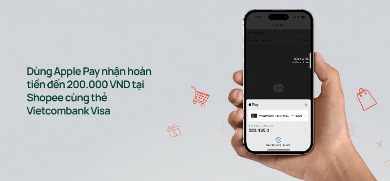 - Hoàn tiền 100.000 VNĐ: Mỗi giao dịch thanh toán qua Apple Pay có giá trị từ 500.000 VNĐ sẽ được hoàn tiền 100.000 VNĐ. Đây là một cách tuyệt vời để tiết kiệm chi phí mua sắm khi sử dụng thẻ Vietcombank Visa trên Shopee.