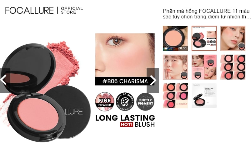 Sản phẩm phấn má hồng bán chạy nhất trên Shopee, giá rẻ, chất lượng khá tốt chính là FOCALLURE. Với kết cấu mịn, nhẹ và mềm, khuôn mặt trở nên hồng hào, thanh thoát, xinh xắn hơn. Bảng màu 11 màu trẻ trung, thời thượng phù hợp với nhiều style trang điểm khác nhau.