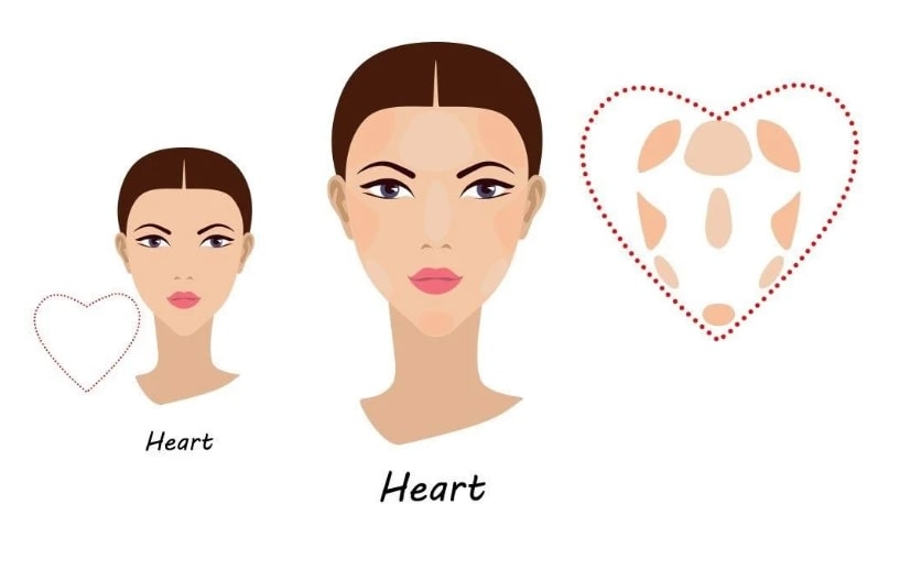 Form mặt trái tim có phần trán hơi to bè, cằm nhỏ và nhọn dần. Khi đánh phấn má, bạn đi cọ thành hình rẻ quạt úp ngược, với phần đuôi chếch lên thái dương. Cách đánh má hồng này giúp đôi má trở nên bầu bĩnh, tròn trịa hơn, các nét trên mặt trở nên cân đối.