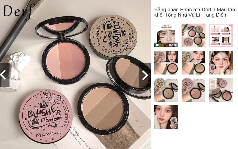 - Phấn má lì, nhũ Derf 3 màu - 72g