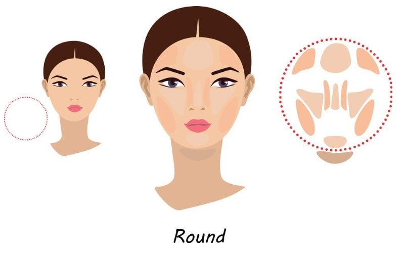 Tỉ lệ các nét trên khuôn mặt tròn là có chiều ngang và chiều dài gần bằng nhau. Vậy nên, khi tán phấn má, bạn cần phải cầm cọ thật chắc, tán đều phấn má từ xương má ra thái dương để gương mặt tạo thành hình chữ V, các đường nét trông sẽ sắc sảo hơn.