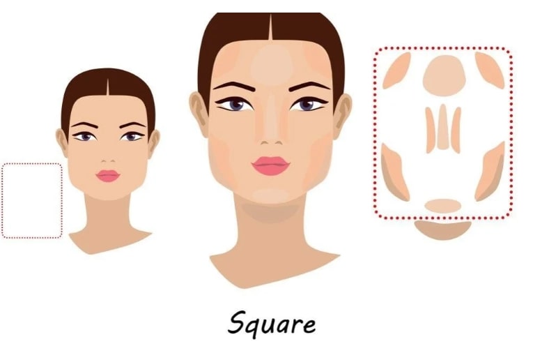 Nhược điểm của khuôn mặt vuông là phần xương hàm hơi bè gây cảm giác khá “thô”. Thế nên khi đánh phấn má, bạn không đánh trực tiếp lên xương gò má, mà đi cọ chếch xuống dưới sao cho vuông góc theo cạnh hàm. Đồng thời, kết hợp với phấn tạo khối để giúp cho tổng thể gương mặt hài hòa, thanh thoát, nhẹ nhàng hơn.