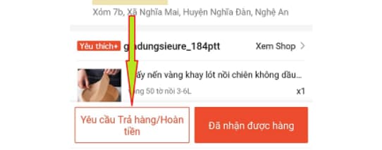 - Bước 2: Nhấn vào ô yêu cầu trả hàng/hoàn tiền
