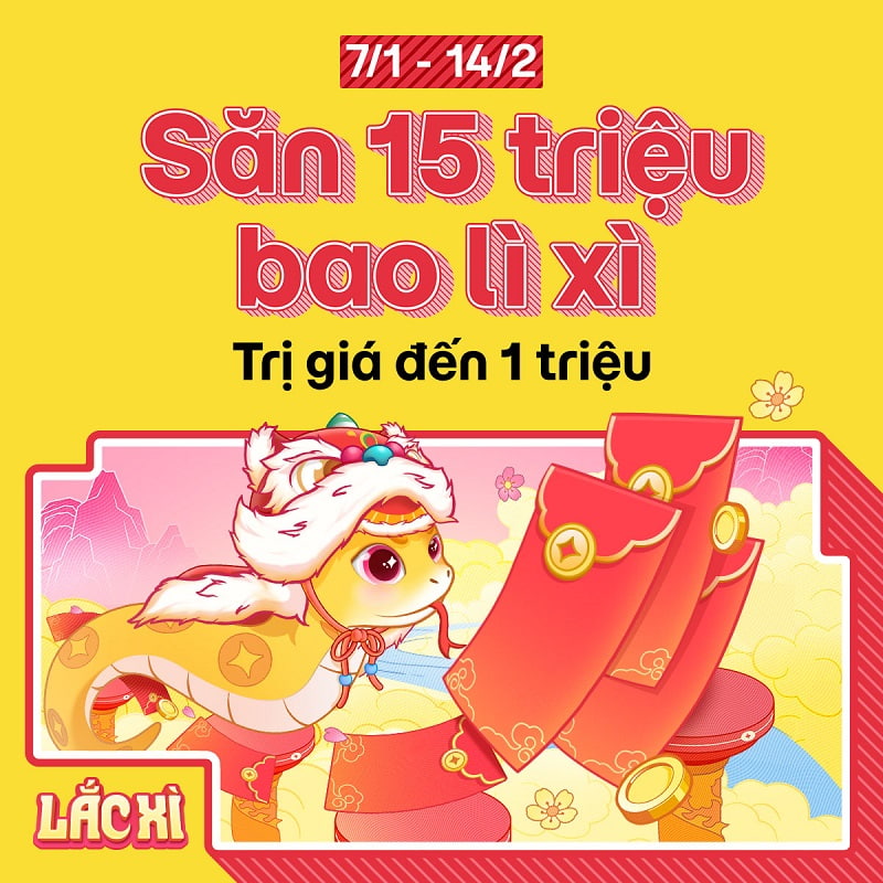 - Lì xì tiền mặt: Tổng giá trị 15 triệu đồng với các bao lì xì tiền mặt từ 10.000 đồng đến 100.000 đồng và đặc biệt có cơ hội nhận 1.000.000 đồng trong suốt quá trình tham gia.