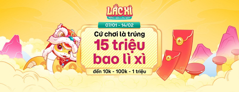 - Túi Lộc Cấp 4: Thu thập đủ 4 viên Ngọc và từ 25.000 Lá Lộc trở lên, nhận Bao lì xì ngẫu nhiên từ 1.000.000, 10.000.000, đến 50.000.000 đồng.