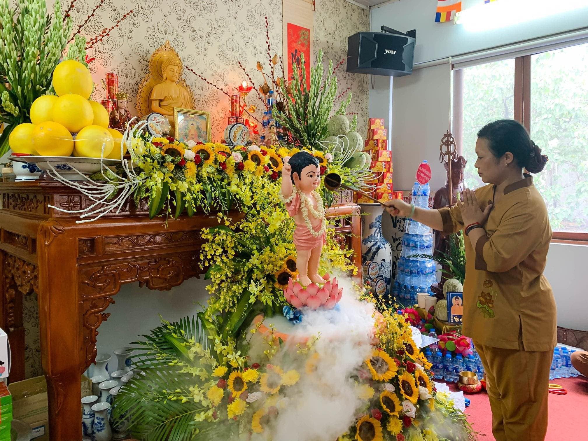 Nghi thức tắm Phật: Phật tử có thể bày biện 1 bồn tắm Phật tại nơi trang nghiêm trong nhà để thực hiện nghi thức tắm Phật.