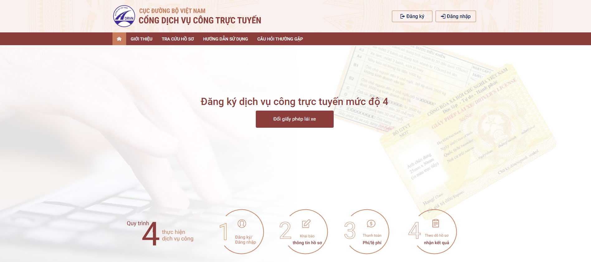 Bước 1: Truy cập vào Cổng dịch vụ công trực tuyến của Cục Đường bộ Việt Nam hoặc click trực tiếp TẠI ĐÂY