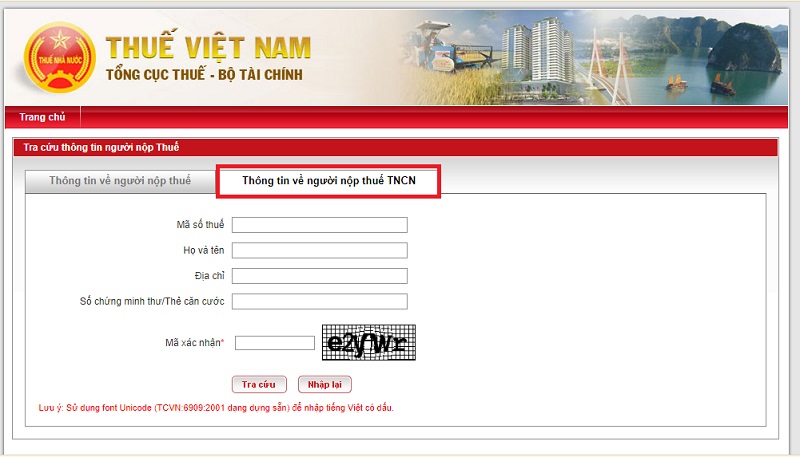 - Nhập mã số thuế hoặc số chứng minh thư/thẻ căn cước và mã xác nhận, sau đó nhấn "Tra cứu" để xem thông tin chi tiết về người nộp thuế.