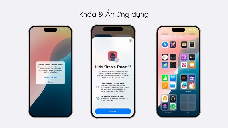 Lần đầu tiên trên các thiết bị nhà “Táo khuyết: người dùng có thể khóa ứng dụng thông qua Face ID, Touch ID hoặc nhập mật khẩu mà không cần dùng đến app của bên thứ 3.
