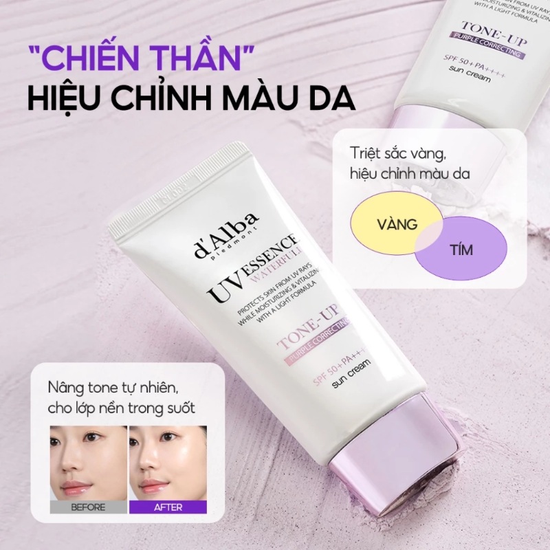d'Alba White Truffle Tone Up Sunscreen (Purple) 50ml là kem chống nắng nâng tone tím, vừa bảo vệ da khỏi tia UV, vừa mang lại hiệu ứng sáng da tức thì. Với chiết xuất nấm Truffle trắng, sản phẩm không chỉ chống nắng mà còn dưỡng da nhẹ nhàng, phù hợp cho da nhạy cảm. Đây là lựa chọn hoàn hảo cho những ai muốn vừa bảo vệ da hàng ngày, vừa cải thiện sắc da và duy trì tông màu đều màu tự nhiên.